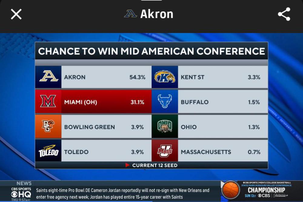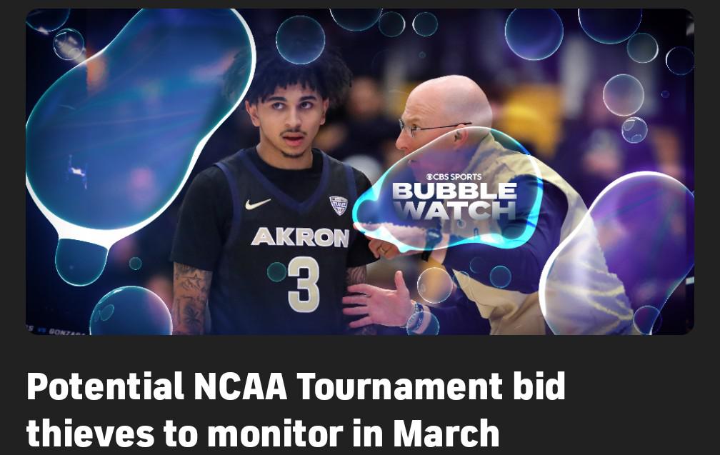 Lots and lots of attention being focused on the MAC right now. I love it, especially because everybody is talking about Akron really being the team people should be paying attention to. CBS Sports discussion on Miami's 's at large chances since they think Akron will win the tournament. And an article on bid stealers since they make the argument if Akron beats Miami Miami might still be an at-large team so that would be a bid stealer. Although that's not a huge upset because Akron's pretty damn close to being tournament worthy on their own. Zips are the face of the article.