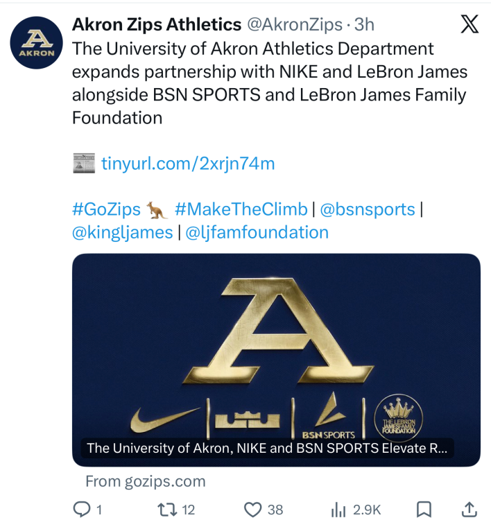 The LeBron connection does get our basketball team some sweet gear. It would be cool if they actually wore LeBron branded unis at some point. Like UNC/Jordan, TT/Mahomes, and Louisville/Mitchell. Nike is the best brand when it comes to college sports. Yeah, it sucks that we don't get the same treatment as the big schools. But that's to be expected. They need to follow the money too.