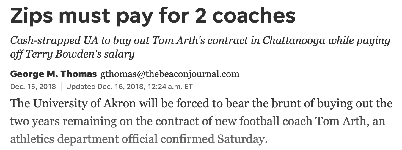 I agree 100%. I have given a good bit of money through the years and it has been Thrown away!! Burned!! I am not going to do it anymore. You build a brand new stadium on Campus and fire JD Brookhart for Ianello!!!!? (btw- JD is doing a great job with our WRs) We paid for 2 coaches back in 2018 and then had to buyout Arth's contract for $637K. At one point we had the Bowdens, Jim Tressel, Coach D and Gerry Faust on campus. We have arguably the best athlete on the planet in our backyard (and used to have the coach he loved). How do you f all of that up!!!? Just leave it to the University of Akron board. I promise you if we would have made Tressel President we would not be in this situation.