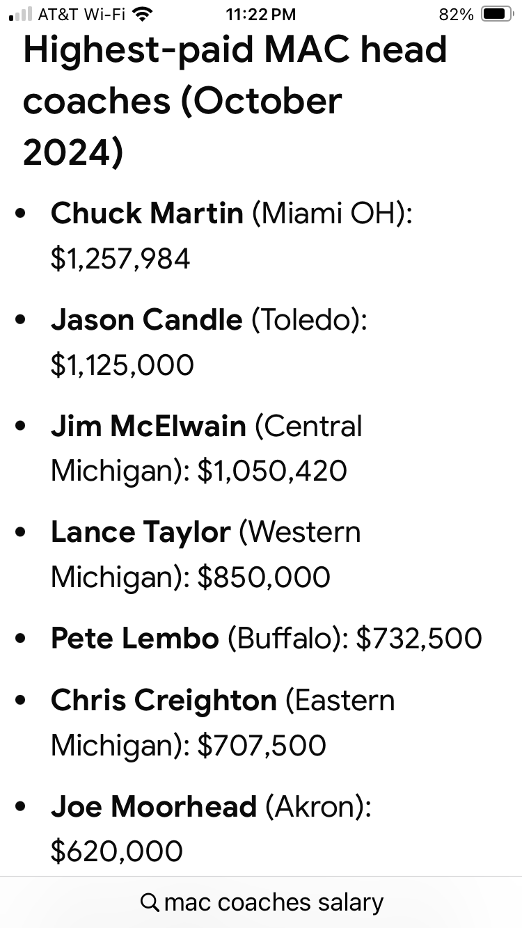We're in year 4 of a highly paid coach. Kent is in year 1 of an interim-turned-permanent coach, reacquired the Wagon Wheel, and has a chance to not just match our win total but possibly go bowling. The little victories were fine in years 1&2. It's unacceptable in year 4. 2 losses to first year HCs and we couldn't muster 10+ pts vs Wyoming at home. If it wasn't for UMass joining the MAC, we'd probably be capping out at 4 wins again. I don't see an improved product on the field, at least not what you'd expect from JoeMo in his 4th year. It's hard for me to celebrate barely beating BUGS who is objectively horrendous.