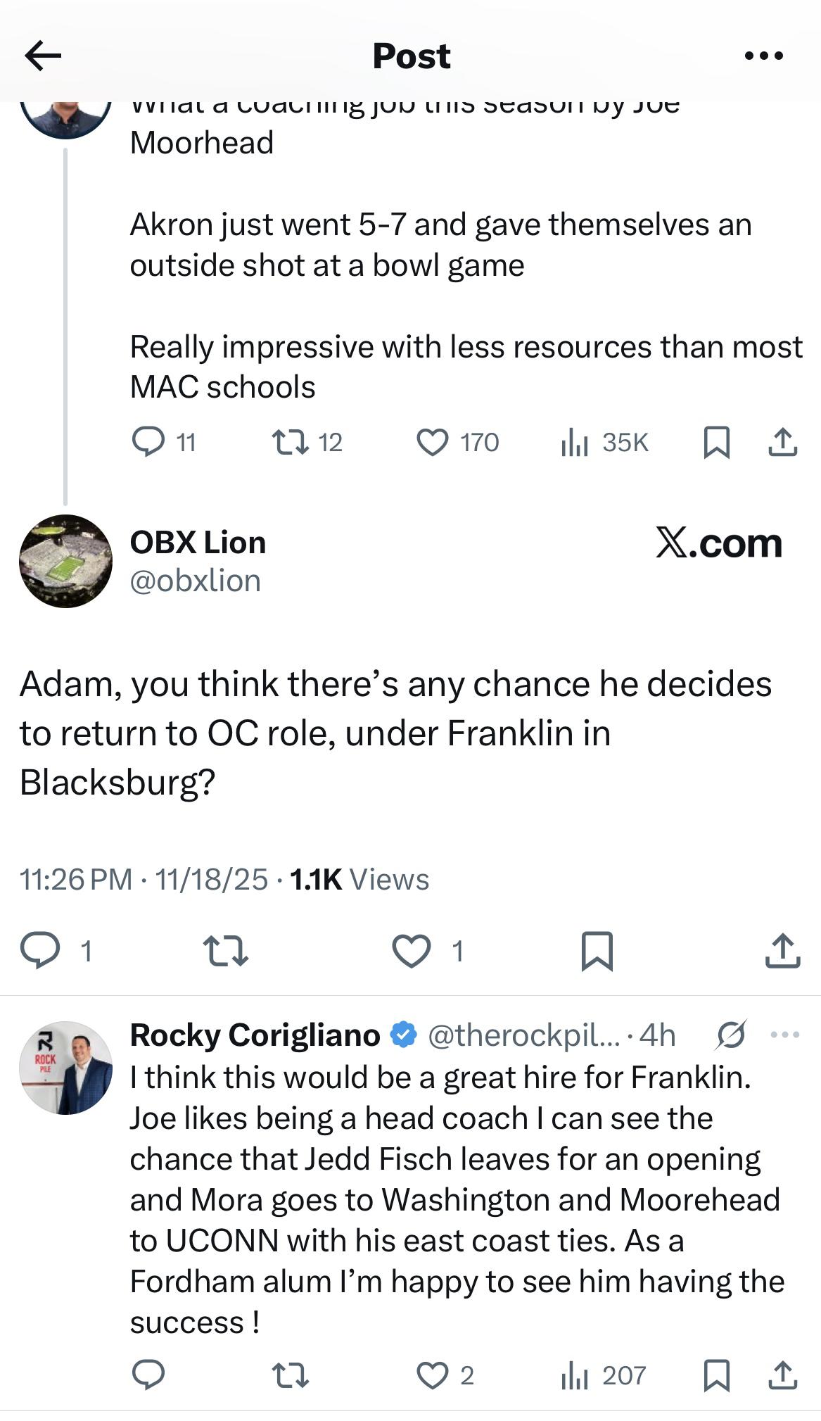 I can't imagine what the response would be if we fired Moorhead after having the most wins in 8 years. If he takes another job so be it, but firing a coach because we didn't go .500 hasn't fared too well in the history of Infocision Stadium. I totally understand the thought of we can find a new coach that fires up the team and we go to the top of the MAC out of nowhere, but I think that is pretty risky to go all in on considering we have made progress the last 2 seasons. We lost almost all our skill players last year, and this year we developed a great group of them. I have a hard time believing we just stumbled on to players like Williams, Gant, Polk (2 year track) because no one wanted them. Most of them will leave again this year even if we don't fire the coach. But I trust this current regime to develop players, which is very important with the current state of college football. You are only living a year at a time so you need someone to be quick to mold a team together. I am sure other coaches can do that, but is there going to be someone like that available this offseason and are they going to want to come to Akron? I wouldn't call The University of Akron athletic department a big risk taker. If that was the case then I would imagine we would have a different soccer coach after not living up to UA standards from 2019-2021