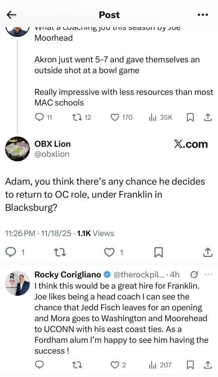 The University has never once publicly mentioned any of the crippling limits placed on the football program in the name of budget cuts. They’ve hung Joe out to dry with a historic lack of support, whistling through the graveyard, and by their silence painting Zips football as having the same resources as every other MAC program. It isn’t fair to Joe, and I expect that grates on him. And it should. Bobby Knight once famously said - "If you're getting raped, you might as well lay back and enjoy it." Joe has bit his tongue 95% of the time, but who can blame him if, when pressed, he vents on his lack of recruiting budget, training tables, staff, and on and on? UA isn’t holding any pressers stating “You gotta understand the situation we’ve placed Joe Moorhead in. I can’t believe the guy won 3 games, let alone 5.” It's Zips Football against the world. Maybe the same geniuses at UA who’ve blundered every football-related decision since Jim Dennison’s firing will identify a "unicorn" coach that only wants a $300,000/year salary, that flits about Summit and Stark counties with a wicker basket collecting NIL money from scores of donors happily willing to fill it up, while also coaching Akron to MAC Championships and bowl victories. Wish in one wicker basket and poop in the other...see which fills up first. I have no clue what Goodrich will do regarding football. Maybe he spends a year crafting a new logo, quits his job and moves on to the next rung on his AD ladder? Maybe he’s empowered, independent of thought, and implements a plan to elevate Zips football to respectability? That would be awesome. Historically new AD’s "check their box" and hire “their guy” to run either the football or basketball program. On paper, Joe is on the hot seat. It it were me, I would fix the budget BS, show Joe a little love, and see what transpires in 2026. Joe took over a 1-11 Fordham team and went 38-13 during his tenure, winning 11 and 12 games in successive seasons. The guy can win big at the FCS/G5 level. It’s proven. But not when he’s hamstrung and unsupported. No one can.